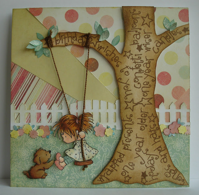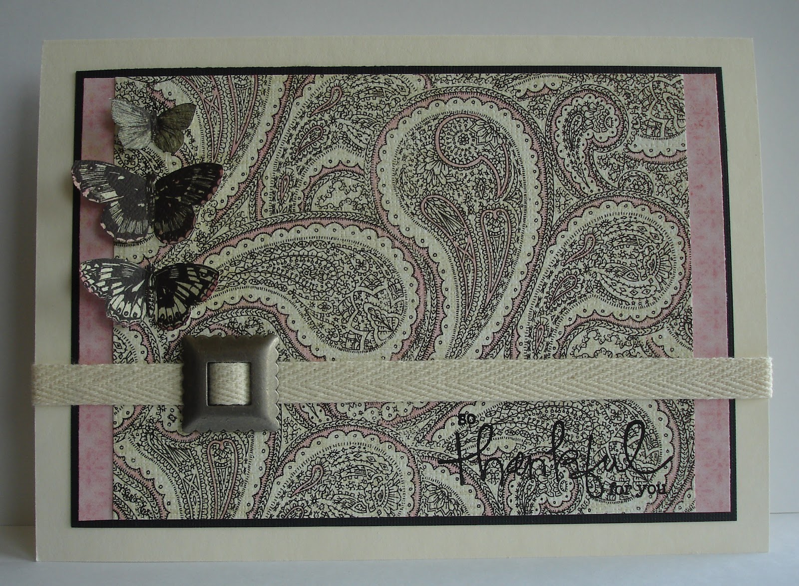 Today's card was fun to make. A couple of new (to me) stamps and fun colors. However, I do feel sorry for these children. I know their mother went out and found them matching outfits, sat them in her garden with a scrapbook she made for them, told them NOT to get it dirty, and PLEASE act like you love each other because this is going on a card for Grandma!